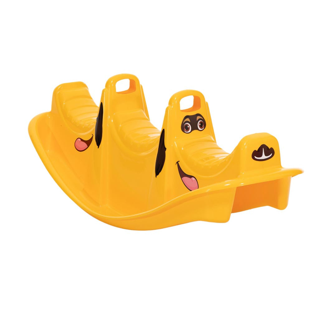 Vtipne tvarovaná plastová hojdačka pre deti.
