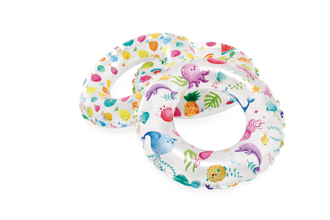 Bezpečnostný ventil nafukovacej plávajúcej gumy s tromi rôznymi vzormi, ktoré sa posielajú náhodne. Vonkajší priemer: 61 cm. Cena je za 1 kus! Odporúčame pre deti vo veku 6-10 rokov! Upozornenie, používajte pre deti len v plytkej vode a pod dohľadom dospelých!
