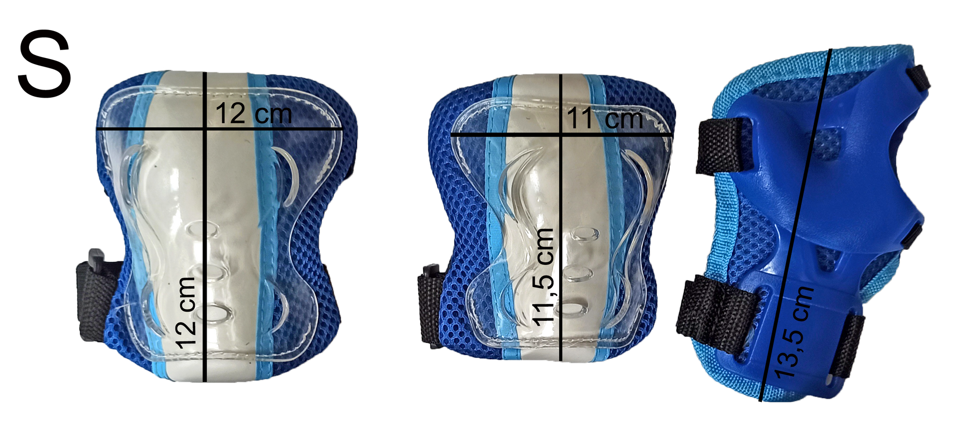 6 kusov ochranného vybavenia (1 pár chráničov rúk, 1 pár chráničov lakťov a 1 pár chráničov kolien). Veľkosti S, M a L.